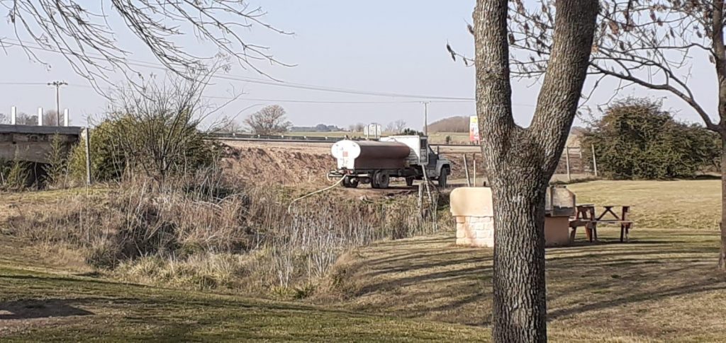 Está hermoso, hay que decirlo, y seguramente se pondrá cada día mas lindo. Pero -siempre existe un pero- nos llamó la atención que varios camiones, supuestamente que son en su mayoría camiones de los llamados atmosféricos, están instalados como se ve en la imagen, en la parte del arroyo que dá contra la ruta, y ahí despliegan sus mangueras hasta el arroyo.